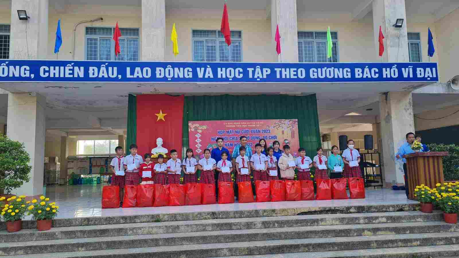 Ngoài các hoạt động giải trí, trường còn tổ chức trao tặng quà Tết cho những học sinh có hoàn cảnh khó khăn. Đây là một phần quan trọng của chương trình, nhằm giúp các em có một cái Tết ấm áp và tràn đầy niềm vui. Những phần quà này không chỉ thể hiện sự quan tâm của nhà trường mà còn là món quà tinh thần, động viên các em tiếp tục phấn đấu trong học tập và cuộc sống. Buổi họp mặt "Nụ cười xuân" không chỉ là dịp để các em học sinh vui chơi mà còn là cơ hội để toàn thể cán bộ, giáo viên và phụ huynh thể hiện sự quan tâm, yêu thương và sẻ chia trong mùa xuân tươi đẹp.